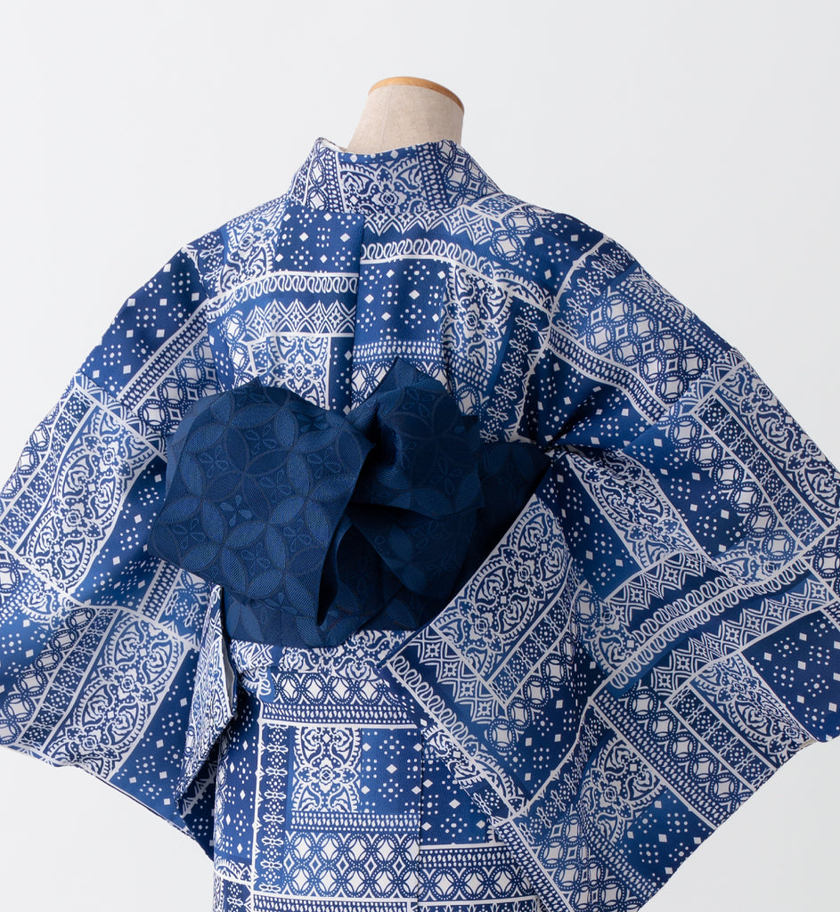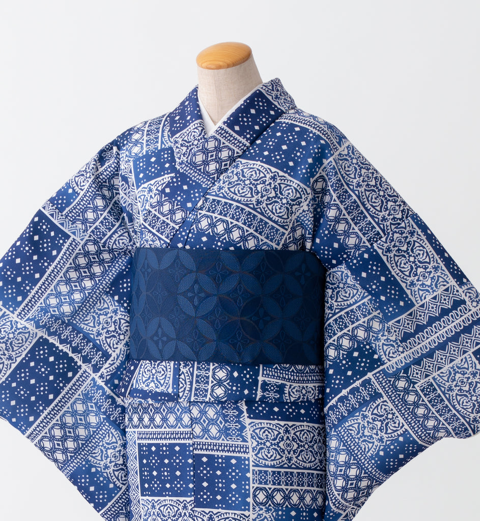 ネイビカラー×レース柄で、クールになりすぎずどこか可愛らしい印象に。アクセントカラーを入れた和洋MIXコーデが◎!