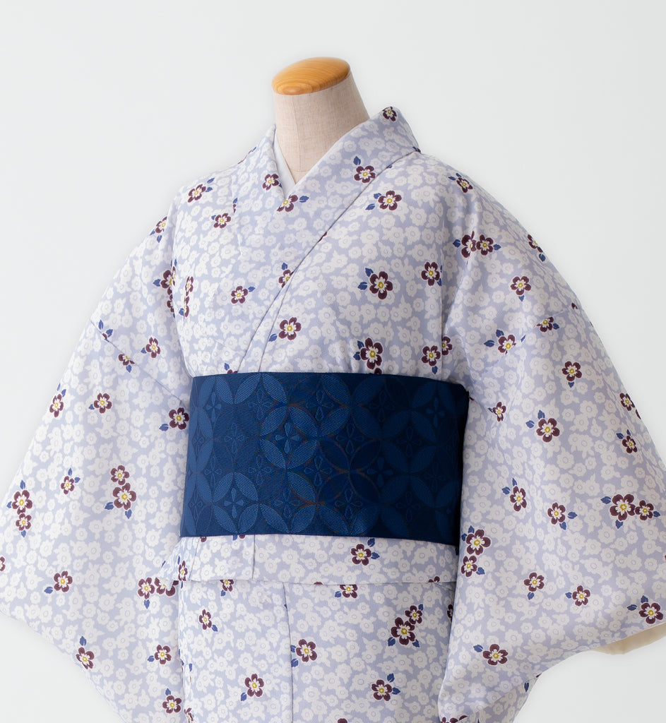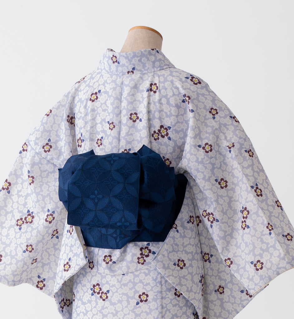 ブルーグレー×小花柄で、かわいらしさがありながら甘さ控えめなきもの。カジュアルコーデも似合います。