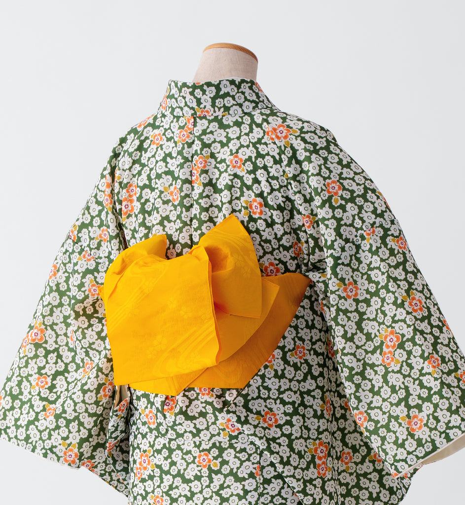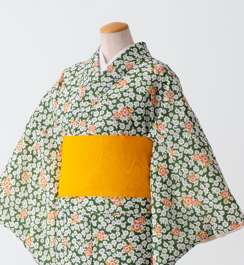 小花柄がかわいらしい、レトロ感のあるきもの。はっきりとしたカラーリングなので、どんなコーデも似合う!