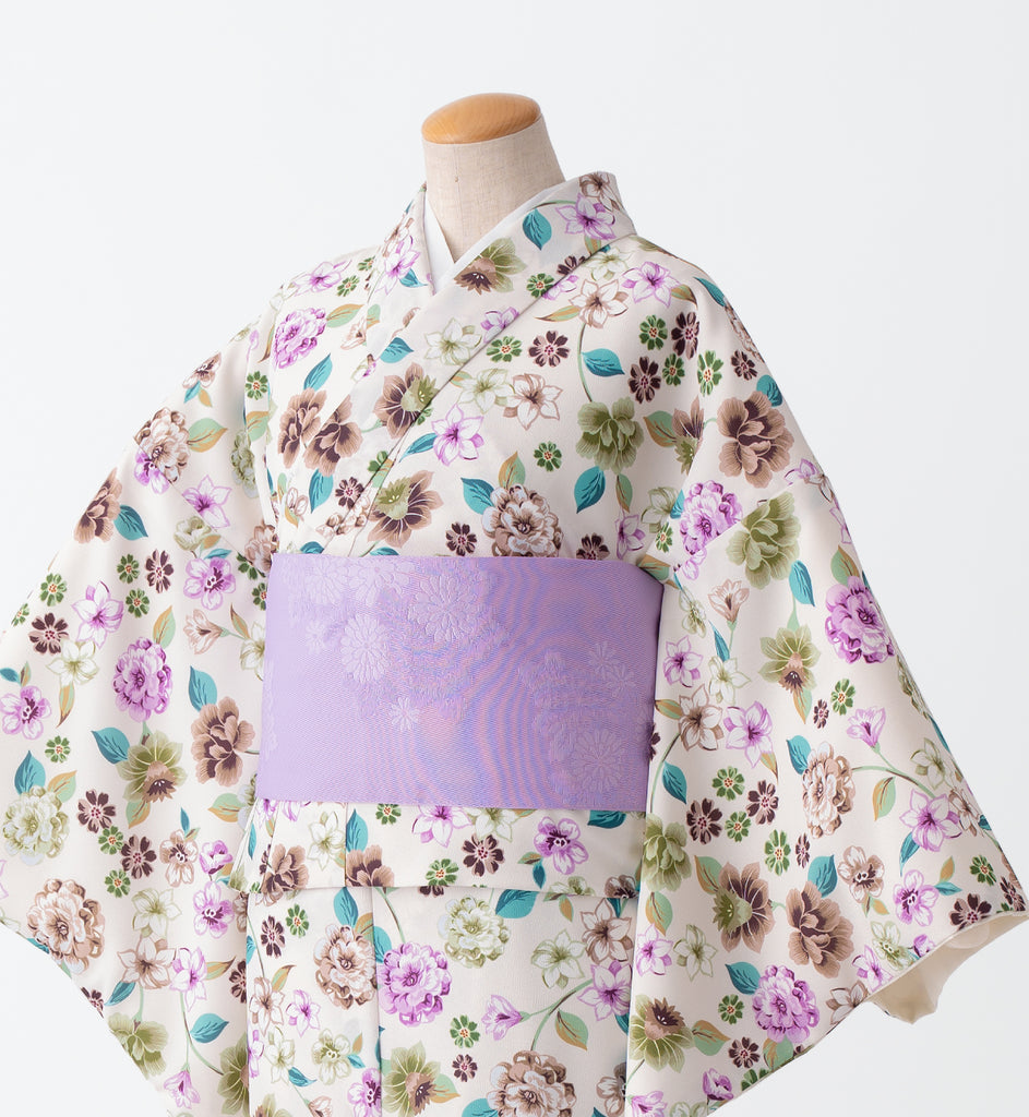 洋風の花柄が映えるカラーリング。 華やかな印象のきものなので、派手なコーデもレトロコーデも◎!
